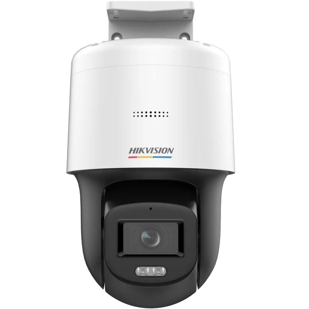 The Hikvision DS-2DE2C400SCG-E outdoor PT IP camera delivers 4 megapixel resolution and features a 2.8 mm fixed lens providing a 105° field of view. Its IP66-rated housing is resistant to water and dust. Vivid, full-color night images are ensured by ColorVu technology, the extra light-sensitive lens, and the advanced image sensor. The built-in white LED illuminator provides up to 30 m range and further enhances night-time color image quality. The white LED can be manually adjusted and the camera can also be used without any illumination. With its integrated microphone and speaker, it supports two-way audio, allowing you to communicate through the camera remotely. The camera is equipped with WDR (Wide Dynamic Range) technology to improve image quality in challenging lighting conditions (e.g. when facing strong backlight, the camera compensates to keep the image usable). It supports the H.265 compression format, which is particularly important for IP cameras as it reduces required bandwidth and storage space. Simple installation is enabled by PoE, as both video signal and power are transmitted over a single UTP cable, eliminating the need for multiple cables. The camera records to a microSD card (up to 256 GB), which is not included.