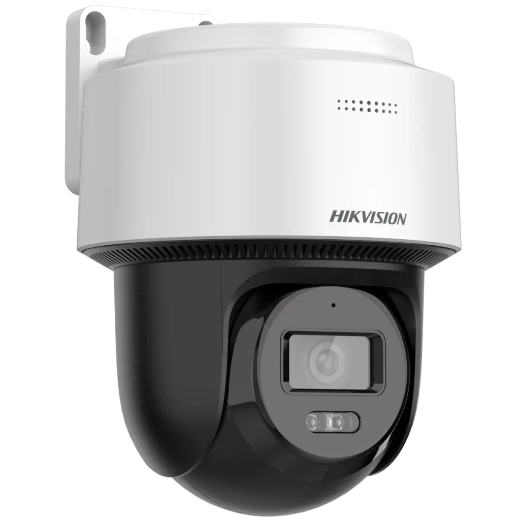 The Hikvision DS-2DE2C600MWG-E outdoor PT IP camera offers 6 megapixel resolution and a 2.8 mm fixed lens with a wide 105° field of view. The IP66-rated housing is resistant to water and dust. Thanks to Smart Hybrid LEDs, the camera delivers full-colour night vision, combining up to 30 m IR range with white light illumination. With advanced video analytics, it can detect human shapes and automatically switch the lighting mode to white light, capturing detailed colour footage. When no important object is detected, it switches back to high-performance infrared LEDs. This function can also be adjusted manually, allowing you to use a single illumination mode only, and it significantly reduces false alarms. The built-in microphone and speaker enable two-way audio, so you can communicate through the camera remotely. WDR (Wide Dynamic Range) technology improves image quality in challenging lighting conditions (for example, when facing strong backlight, the camera compensates to maintain a usable image). The camera supports the H.265 compression format, which is especially important for IP cameras as it reduces required bandwidth and storage usage. Easy installation is ensured by PoE support, as both video signal and power are transmitted over a single UTP cable, eliminating the need for multiple cables. The camera records to an SD card (up to 512 GB), which is not included.