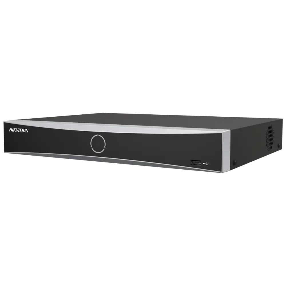 The Hikvision DS-7632NXI-K2 is an advanced AcuSense IP NVR that supports up to 32 IP cameras with a maximum 12MP resolution. It supports H.265+ video compression, helping to reduce storage requirements by up to 75% compared to older H.264-based recorders. The unit can host two hard drives (HDD), up to 16 TB each (HDD not included). The NVR supports 4K HDMI output, so camera images can be viewed in 4K on a TV or monitor. It offers a wide range of smart functions that improve surveillance efficiency and reduce the need for manual intervention. Thanks to AcuSense technology, the recorder provides advanced motion detection, as well as human/vehicle classification and analysis to help reduce false alarms. Face recognition features include face comparison and face detection. Smart search enables fast video retrieval in a selected area, while smart playback improves playback efficiency. Using the Hik-Connect app, you can remotely view the connected IP cameras from your phone. This NVR does not have built-in PoE, so camera power must be provided via a PoE switch or a separate power supply. The NVR’s AcuSense features are also available with limited capability when used with non-AcuSense cameras.