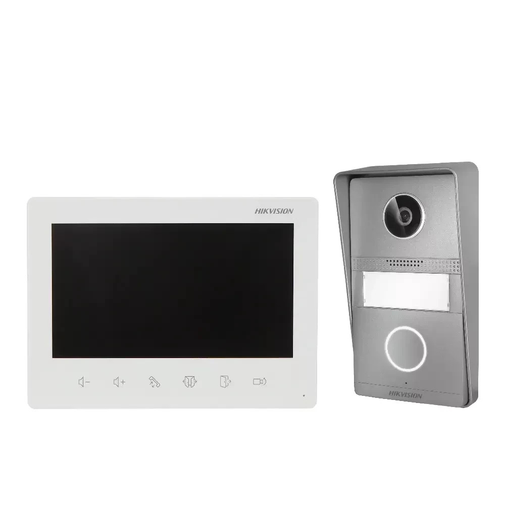 Hikvision DS-KIS101-P/Surface offers easy installation, secure communication and a clean, modern design. This 2-wire video intercom kit is ideal for family homes, apartment buildings and small offices. The 7-inch indoor monitor and 2 MP HD outdoor camera provide sharp images and reliable two-way audio, while the robust, weather-resistant outdoor unit is built for long-term performance.