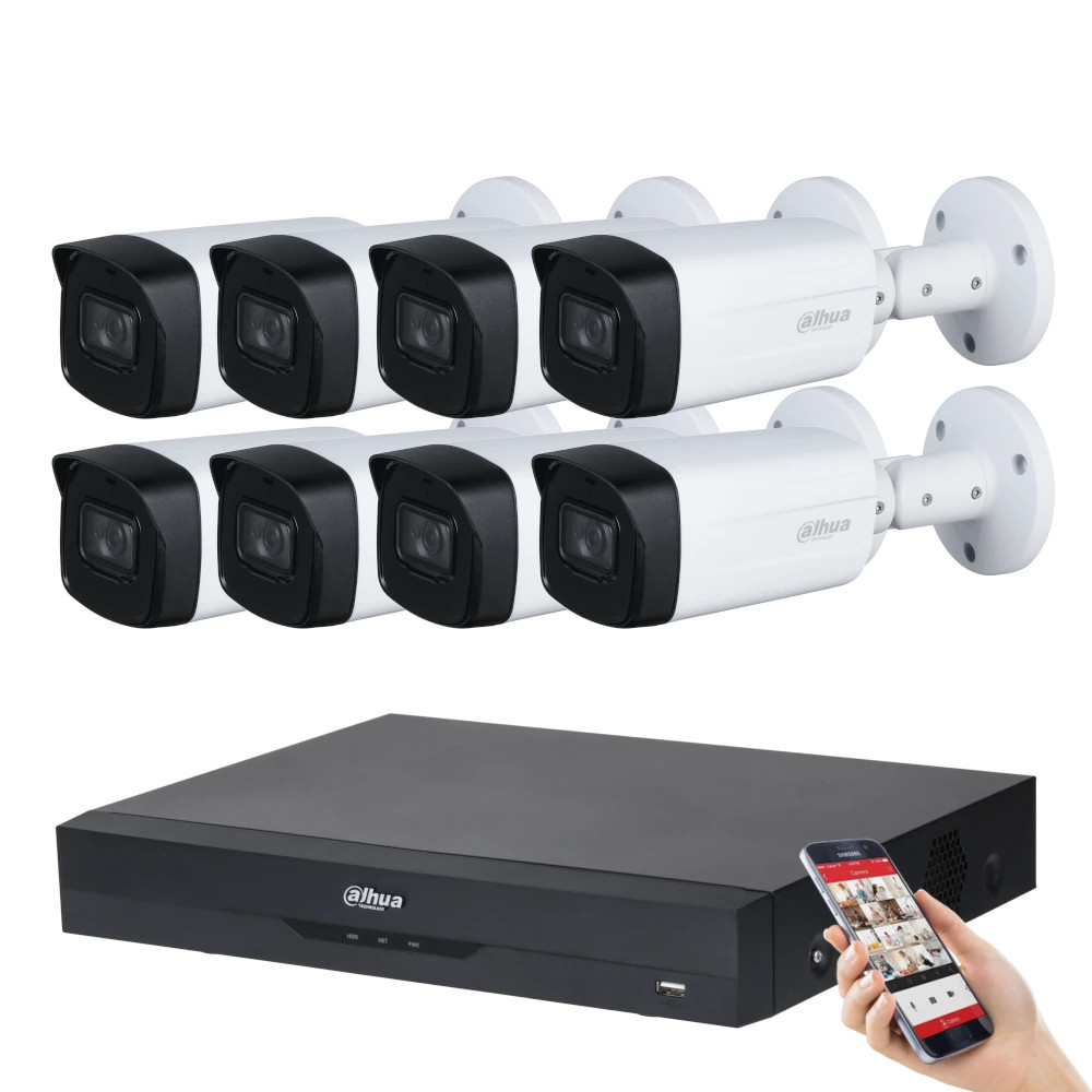 Our Dahua 5 megapixel security camera system kit is an effective solution for outdoor and indoor surveillance of family homes, offices, apartments and business premises. The package includes eight 5 megapixel, 2K resolution security cameras that deliver excellent image quality even in complete darkness up to 80 metres, thanks to the built-in Starlight IR LEDs. The camera system also includes an 8-channel HDCVI 5 MP XVR digital recorder with remote access, so you can view and manage the system via your phone. The recorder interface is available in Hungarian as well. With the included installation kit (camera power supply, video balun, UTP cable, power connector), the system is easy to install and operate, making it an ideal choice for anyone looking for a reliable security solution.