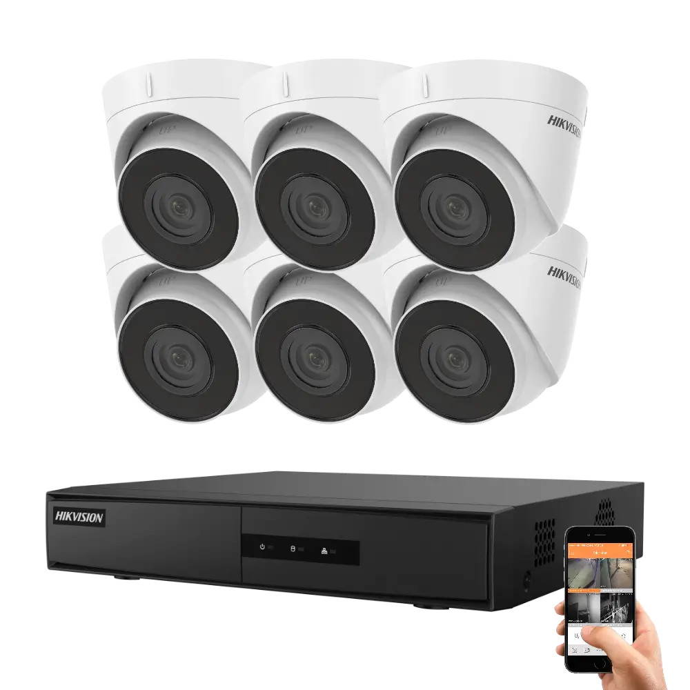 Hikvision IP security camera system with 6 dome cameras, 4MP 2K resolution and 30 m night vision