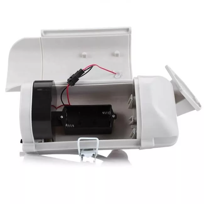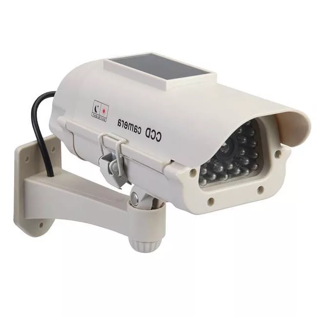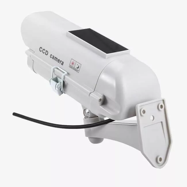 The IN11G outdoor solar professional dummy camera with flashing LED is an excellent lookalike of real security cameras available on the market. To install the dummy camera properly, you only need to drill three holes at the chosen location. Using these holes, you can securely fasten the dummy camera to the wall with the included screws and wall plugs, so you do not have to worry about it falling off even in windy weather.