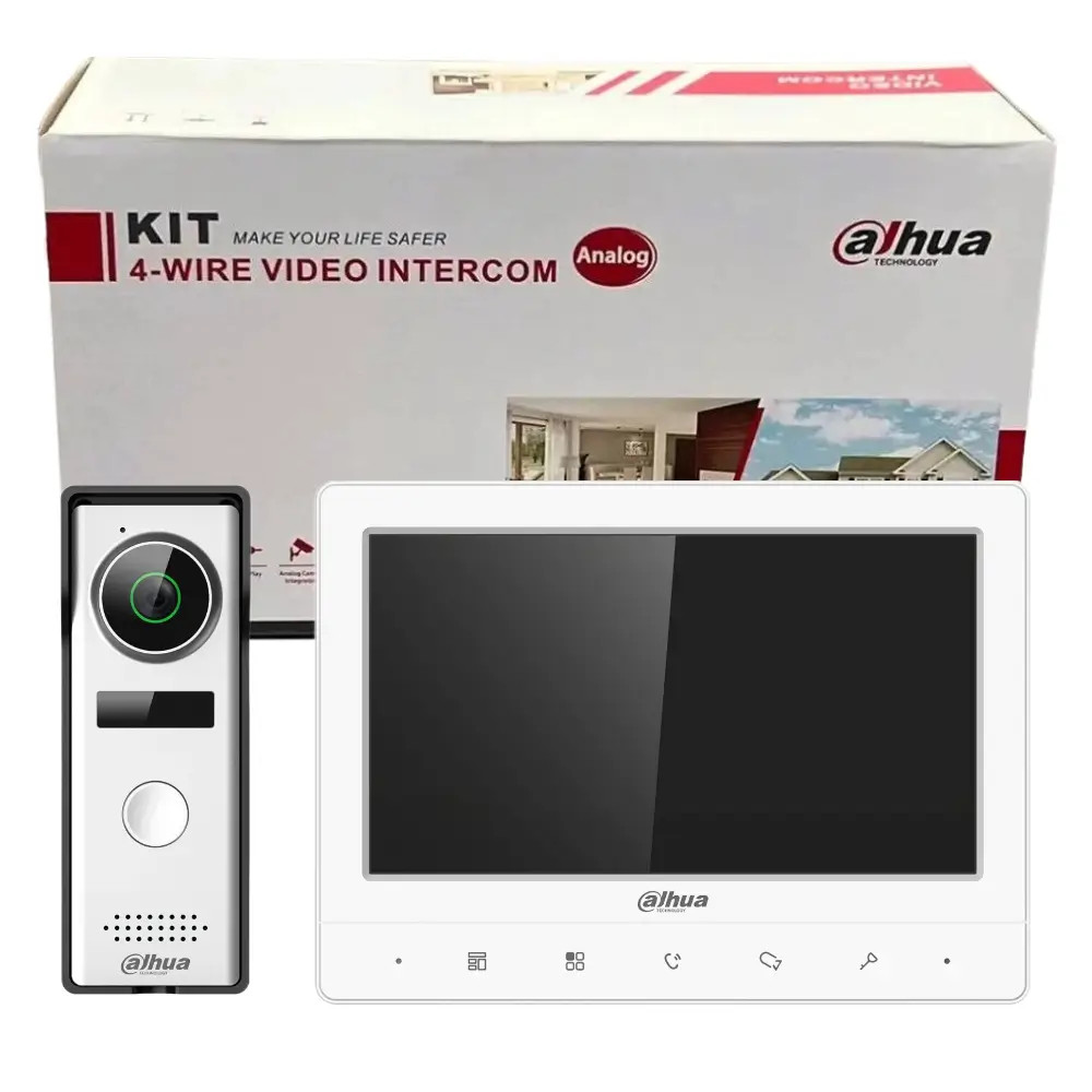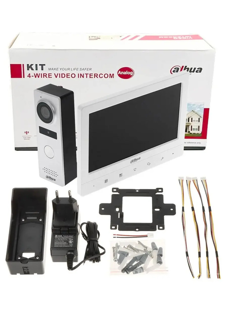 The Dahua KTA02 (VTH1020J + VTO1000J) video door phone kit is a modern and reliable solution for secure access control at home and office entrances. The package includes a 1.3 MP outdoor camera and a 7-inch indoor monitor, providing clear, detailed video.