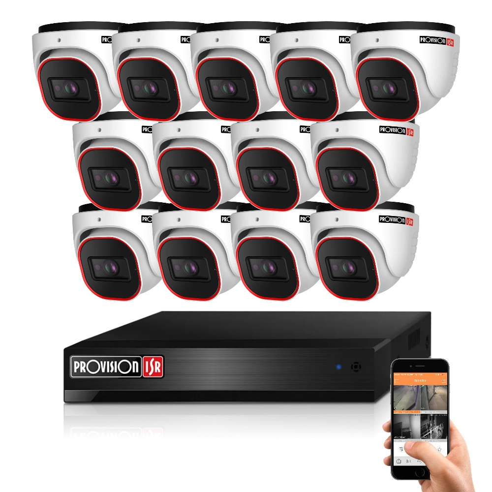 Discover the Provision AHD-23 dome surveillance camera system, ideal for enhancing security at home or in the office. The kit includes thirteen 2 megapixel Full HD dome security cameras that deliver excellent image quality even in low-light conditions with night mode. It also comes with a 16-channel XVR digital recorder that enables remote access for flexible monitoring. Thanks to the included installation kit (camera power supply, video balun, UTP cable, power connector), the system is easy to install and operate, making it a practical choice for those looking for a reliable security solution.