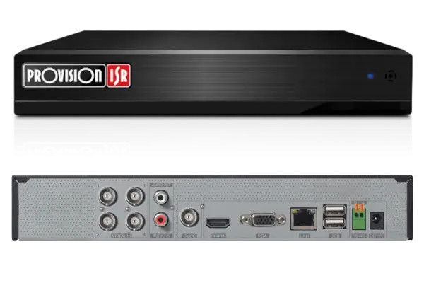 The Provision SH-4100A5N-2L(MM) hybrid XVR recorder supports both analog and IP cameras, making it a flexible solution for small systems. It offers 4 channels for AHD/CVI/TVI/analog cameras and 2 additional IP channels. A monitor can be connected via VGA or HDMI outputs. Recording is supported on 4 AHD/CVI/TVI/analog channels and 2 IP channels at up to 2MP Full HD and 100 FPS in total. The recorder allows simultaneous playback of four channels and includes intelligent video analytics functions. It features 1 x SATA port (supports up to 6TB HDD, not included), 2 x USB 2.0 ports, and a 100 Mbps RJ-45 network interface.
