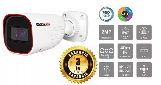 The Provision I4-320A-28 is an advanced security camera designed for outdoor use. This 2 megapixel, Full HD 1080p camera delivers sharp, clear images even in low-light conditions. Its night vision range is up to 40 meters, making it a strong choice for medium-distance coverage. The built-in 2.8 mm fixed lens offers a 90° wide viewing angle. With an IP67-rated water- and dust-resistant housing, it withstands harsh weather conditions, ensuring reliability and durability in a wide range of environments.