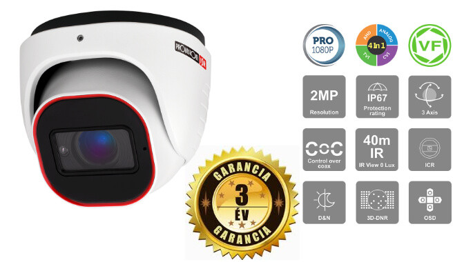 The Provision DI-320A-VF is an advanced security camera, ideal for both indoor and outdoor use. This model is a 2 megapixel Full HD 1080p dome camera that delivers sharp, clear images even in low-light conditions. Its night vision range is 40 meters, making it a strong option for medium distances. The built-in 2.8–12 mm varifocal lens offers a 90–33 degree field of view. The adjustable lens lets you focus and zoom on a specific point within the monitored area. This varifocal security camera is a popular solution above cash registers and at entrances. The IP67-rated, water- and dust-resistant housing withstands harsh weather conditions, ensuring reliability and durability in a wide range of environments.