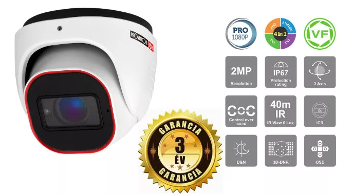 The Provision DI-320A-VF is an advanced security camera, ideal for both indoor and outdoor use. This model is a 2 megapixel, FULL HD 1080p dome camera that delivers sharp, clear images even in low-light conditions. Its night vision range is 40 metres, making it a great choice for medium distances. The built-in 2.8–12 mm varifocal lens offers a wide 90–33 degree viewing angle. The adjustable lens allows you to direct the camera’s zoom and focus to a specific point in the monitored area. This varifocal security camera is a popular solution above cash registers and at entrances. Its IP67-rated, water- and dust-resistant housing withstands harsh weather conditions, ensuring reliability and durability in a wide range of environments.