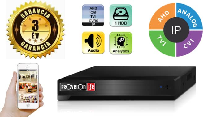 The Provision SH-8100A5N-2L(MM) XVR delivers versatile hybrid digital video recording. As a hybrid recorder, it supports both analogue and advanced IP cameras with solid image quality and features. It provides 8 AHD/CVI/TVI/Analogue channels and 2 IP channels. A monitor can be connected via its VGA and HDMI outputs. Recording is possible on 8 AHD/CVI/TVI/Analogue channels and 2 IP channels, up to 2MP Full HD, 100 FPS total. It supports simultaneous playback of four channels with intelligent video analytics. The unit includes 1 x SATA port (max. 6 TB HDD, not included), 2 x USB 2.0 ports and a 100 Mbps RJ-45 network interface.