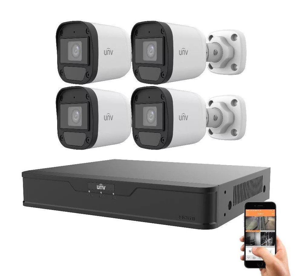 The Uniview security camera system is a kit suitable for both outdoor and indoor surveillance. The package includes four 5 megapixel 3K resolution security cameras that deliver sharp, clear images at an affordable price. The cameras feature multiple image enhancement functions to support later identification. The set also contains a 4-channel XVR digital recorder, which allows you to view the cameras remotely from your phone. Thanks to the included installation kit (camera power supply, video balun, UTP cable, power connector), the system is easy to install and operate, making it a reliable choice for anyone looking for a security solution. The cameras have a built-in microphone, so they can record audio as well.